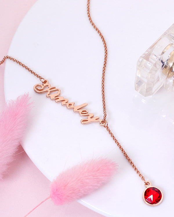 Personalised Name And Dangling Birthstone Necklace