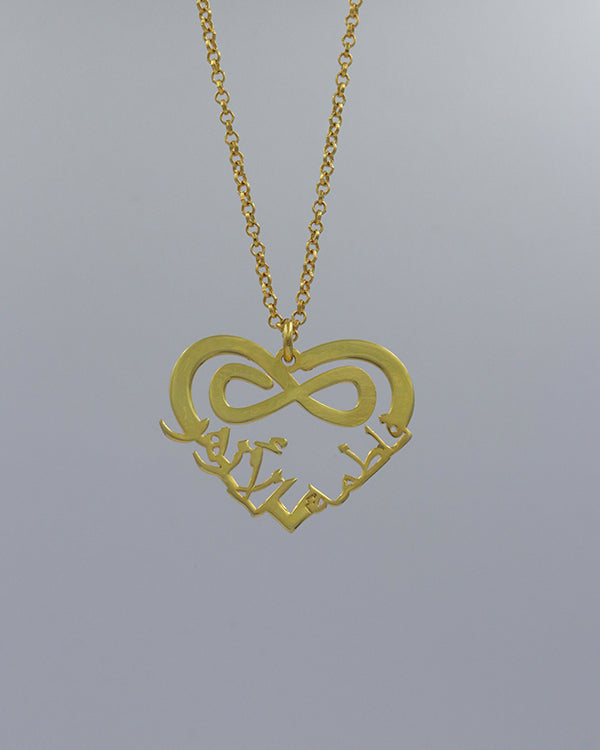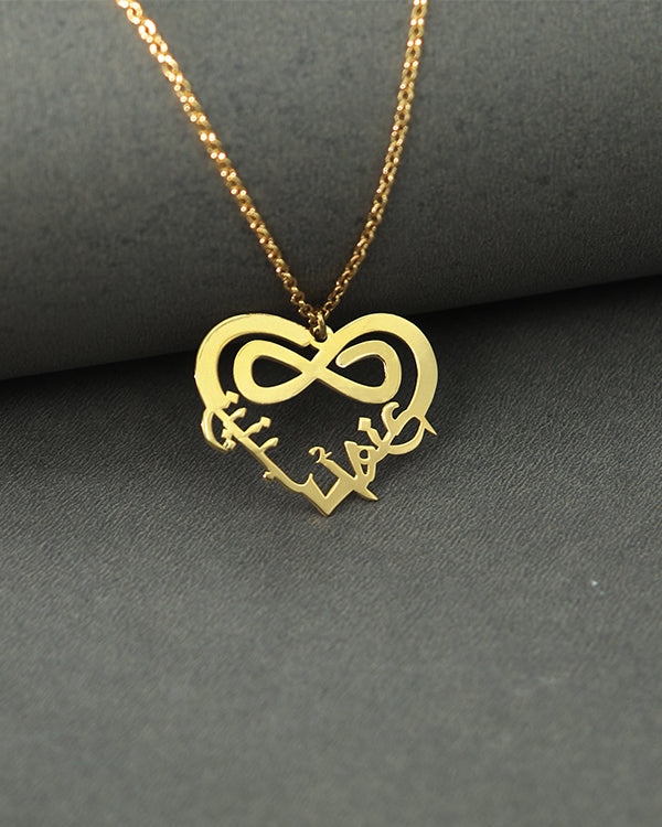 - Arabic Double Name Heart Infinity Necklace is a perfect piece of personalised jewelry that makes you special and shows your personality.