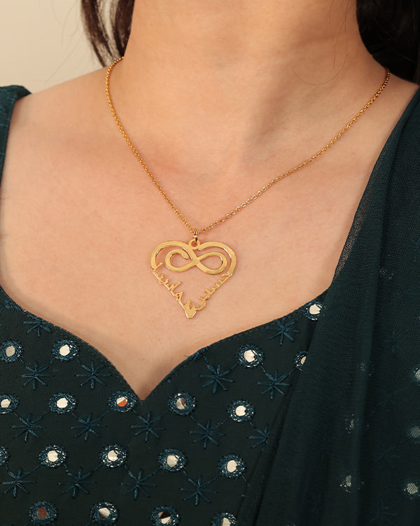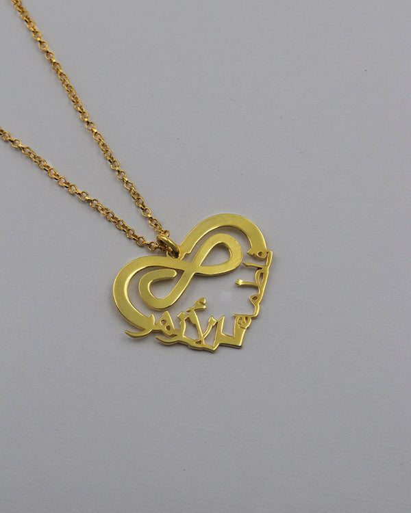 Arabic Double Name Heart Infinity Necklace