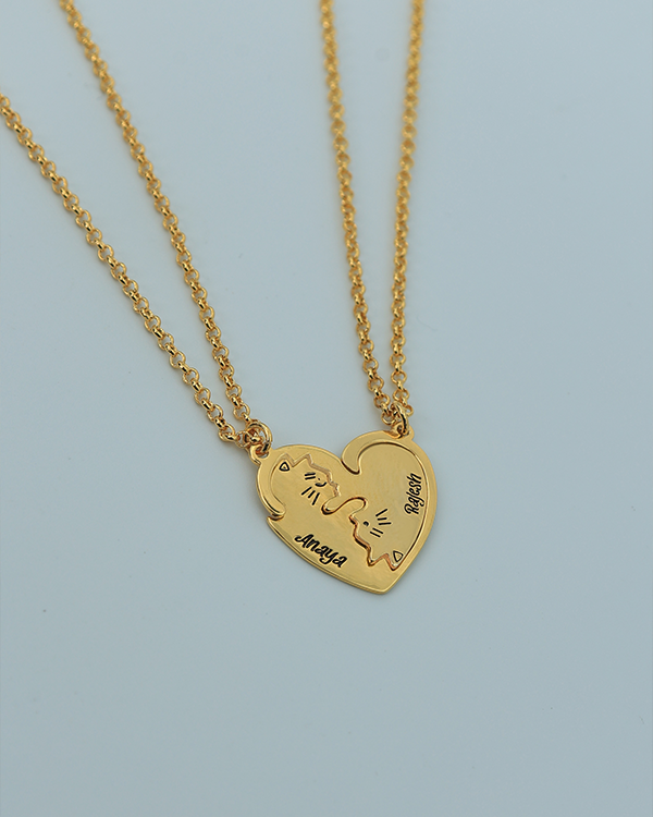 - Crafted intricately, the necklace features two puzzle pieces with a cat, symbolizing the unique bond between partners.